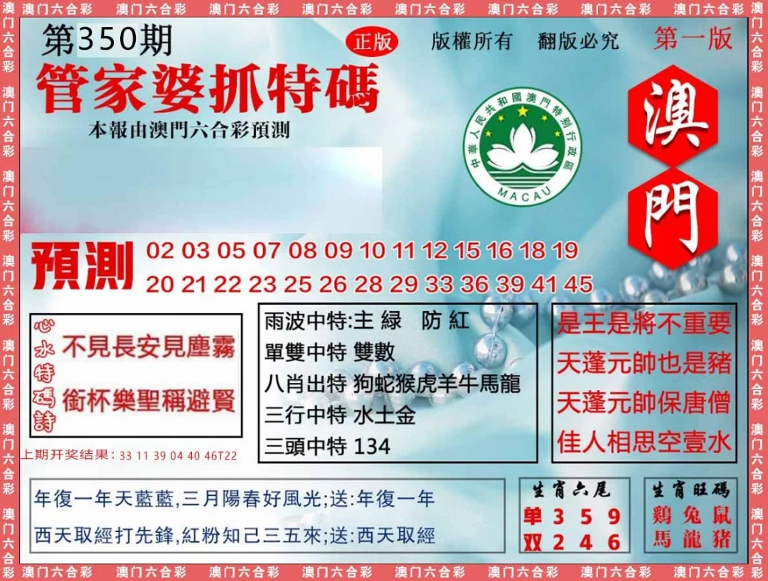 341期-死招平特一肖【龙】两连肖【马鼠】长跟稳赚 |